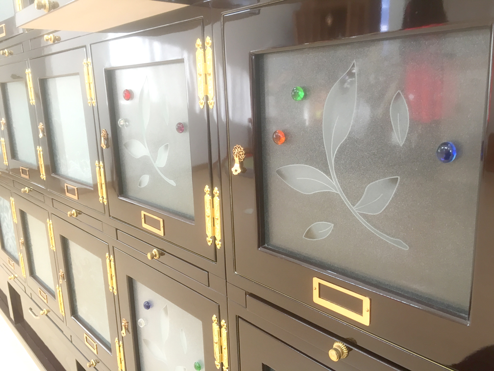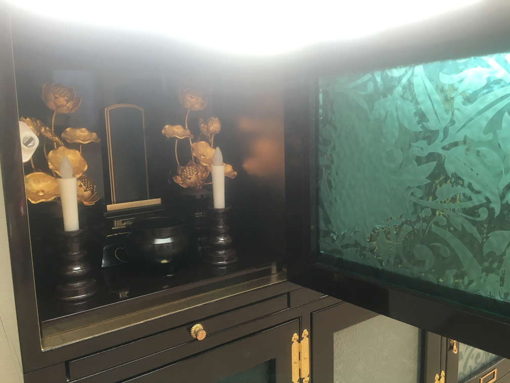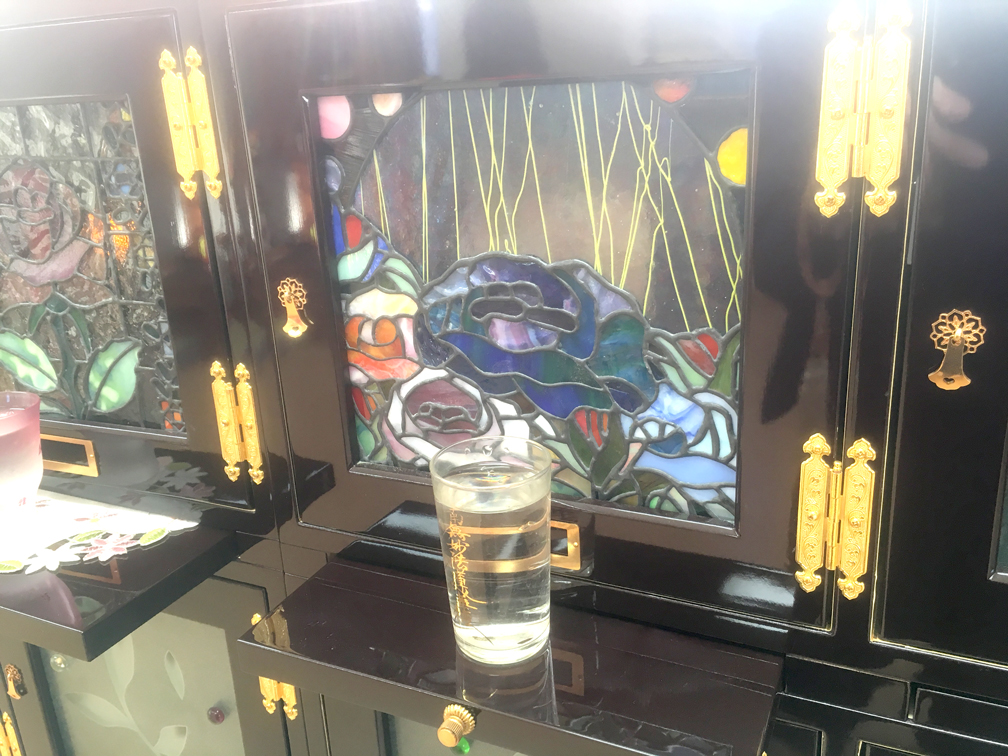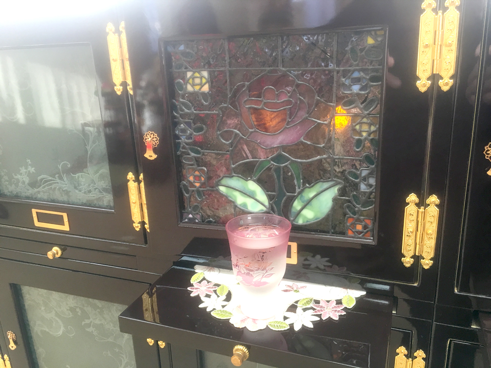 お墓の扉にはご自身の好きな花、絵やイメージ図を形にしてステンドガラスで扉を